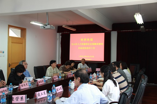 5月29日上午,宝山区人力资源和社会保障局副局长苏卫东等一行5人到我院召开座谈会。院领导姚健敏及相关系和职能处室领导出席了座谈会,会议由姚健敏副院长主持。 会上,苏卫东一行认真倾听我院现有的资源及目前碰到的困难与问题,并作出回应,还积极为我院出谋划策,指导、帮助我院解决问题。