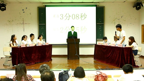 我校首届“青年杯”辩论赛经过预赛、复赛的激烈角逐,最终于6月9日下午进入到了决赛环节。经管系的“说得队”与“讲得队”在决赛战场进行了巅峰对决。本次比赛特邀谢国日老师、姜黎黎老师、王叶梅老师以及学生代表杨新宇担任评委,以“劳力者和劳心者哪个对社会的贡献更大”为辩题展开辩论。双方在一轮富有特色的自我介绍后,由一辩进行了开篇立论,随后双方二辩或三辩进行了攻辩,正方二辩三辩灵活的思维和缜密的逻辑推理,加之反方二辩三辩充分的准备和以举例步步紧逼,使比赛进入白热化;而在第四环节自由辩论阶段,更将比赛推入高潮。面对“说得队”同学引经据典,旁征博引,“讲得队”的辩手们则巧用四两拨千斤的方法,一次次化险为夷,击破对手观点。值得一提的是反方三辩精彩犀利的辩词以及从容应对挑战的态度,赢得在场同学的阵阵掌声。在总结陈词和评委提问之后,谢国日老师进行了生动而精彩点评,既充分肯定了两队辩手在整场比赛中的优秀表现,同时也指出了选手的不足之处,为本场比赛画上了完美句号。最终,“讲得队”以充足的准备和完美的发挥摘得冠军,“说得队”三辩王佳欢摘得“最佳辩手”称号。