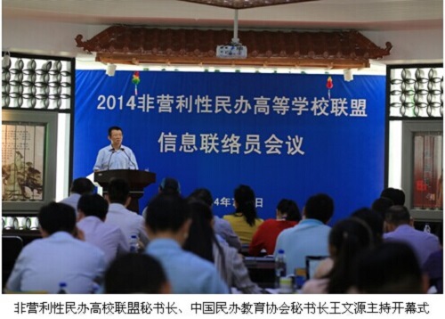 会上,教育部发展规划司民办教育管理处调研员何京华表达了教育部对民办教育的重视和支持,传达了教育部对非营利性民办高校联盟的关注、肯定和期望。他强调,非营利性民办高校联盟受到教育部的高度重视,联盟成立半年以来开展了卓有成效的务实工作,希望联盟高校进一步树立良好的社会形象、坚守社会责任、扩大社会积极影响,并要进一步做好下一阶段工作。中国民办教育协会非营利性民办高校联盟秘书长王文源对2014非营利性民办高等学校联盟的下半年工作进行了部署;会议重点围绕研究、安排联盟下半年工作,制定联盟入盟、退盟办法、建立联盟成员学校基础信息更新工作机制等方面开展了研讨交流。