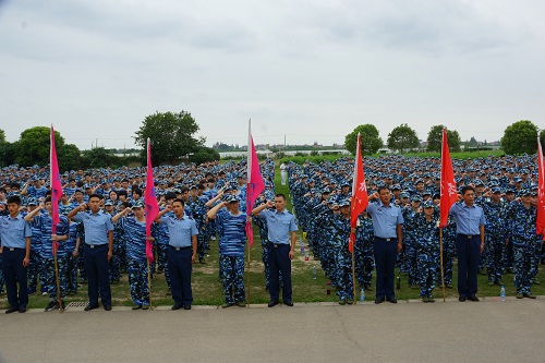中午12:45,伴随着雄壮的国歌,五星红旗冉冉升起,2014级新生军训入营仪式正式开始。校旗、营旗升起后,施林霞同志宣布军训团成员名单、连排编制及教官名单并颁发排旗。党委副书记王滟同志做了军训动员讲话,阐释军训的重要性并提出要求,寄予殷切希望。随训教师、新生代表也相继发言,表达了坚决完成此次军训的决心!开营式在军训团团长方景峰及全体新生的庄严宣誓中顺利结束。