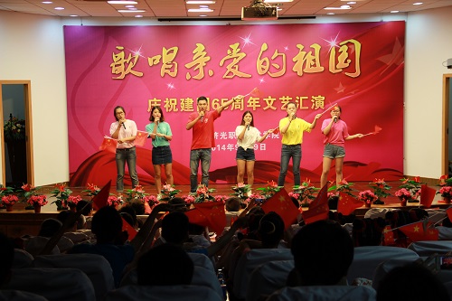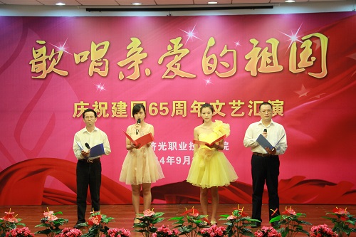 弦歌声声唱出赤子深情,乐音阵阵共贺祖国华诞。9月29日晚,“歌唱亲爱的祖国”庆祝建国65周年文艺汇演在学院报告厅隆重举行。学院领导陈成澍、祁学银、姚健敏、王滟和各部门各系部的职工欢聚一堂,共同观看文艺汇演。
