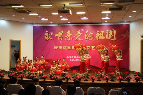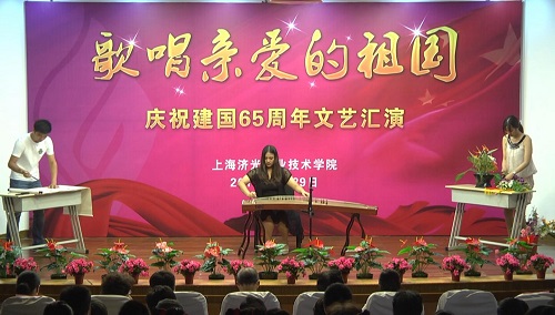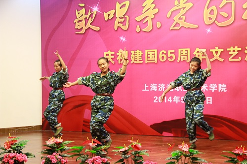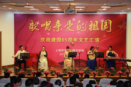 六十五年春华秋实,六十五年斗转星移。本次文艺汇演分为四大篇章:和谐中国、美丽中国、崭新中国、腾飞中国。师生们载歌载舞,以饱满的情绪演绎出了对祖国深深的眷恋和赞美。在杨行小学小朋友们《中国范》激情的舞蹈中,音乐会拉开帷幕。欢快的笛子演奏《春到湘江》,饱含深情的配乐诗朗诵《我的祖国》,民族风格浓郁的书法插花配乐表演《爱我中华、爱我济光》,抒发了我院广大教职工祝福祖国生日,赞美伟大祖国,齐心建设美好家园的真挚之情。学院领导们合唱的《团结就是力量》更是将整场晚会的气氛推上了高潮,来自上海音乐学院的周墨涵、范临风等五位同学的倾情演出,更是获得了在场观众的雷鸣般的掌声;整场晚会激励人心,昂扬向上;高潮迭起,气氛热烈。“我们依恋长江,你有母亲的情怀”伴随着学生合唱团齐声高唱《长江之歌》,晚会圆满落下帷幕。