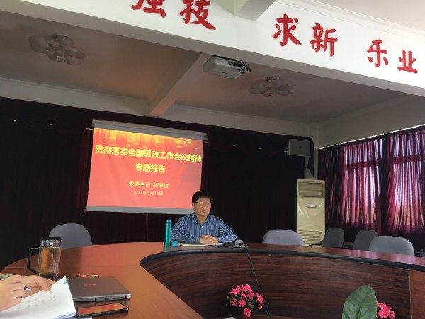为积极响应全国高校学习贯彻落实高校思政工作要求的号召,我院党委书记祁学银于5月16日下午作学习贯彻全国思政工作会议精神专题报告,党总支、直属支部书记、党委工作部门负责人和全体辅导员参会。