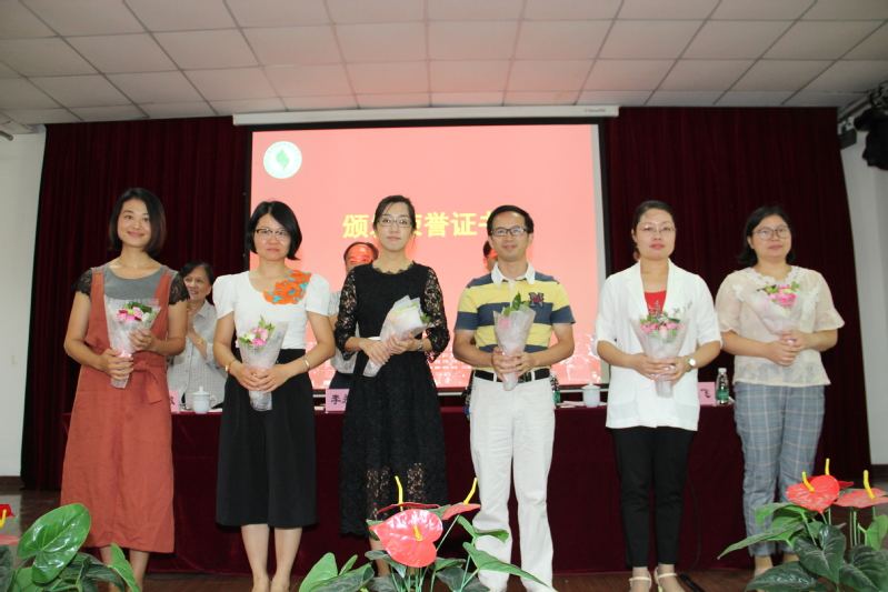 会议伊始,姚健敏副院长宣读2016-2017年度所获教委、市级及以上奖励的人员名单和学院2016-2017年度优秀教师、优秀辅导员、先进教育工作者人员名单,院领导为获奖教职工颁发荣誉证书、奖杯及献花。