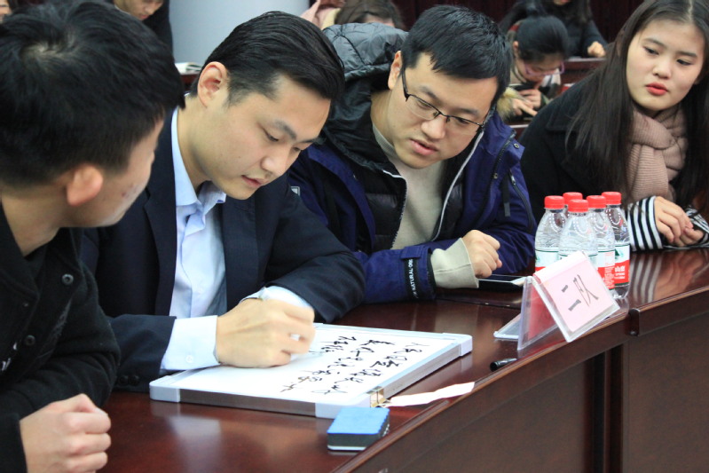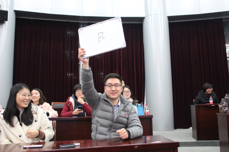 1月3日晚18:30,经管系党总支联合中国银行大华支行党支部、大华新村支行党支部和灵石路支行党支部,在圆形会议室举办“走进新时代 开启新征程”学习宣传、贯彻党的十九大精神知识竞赛。中国银行大华新村支行行长倪涛、经管系党总支书记林俊出席本次活动,经管系党员教师和入党积极分子70余人观摩了本次竞赛。