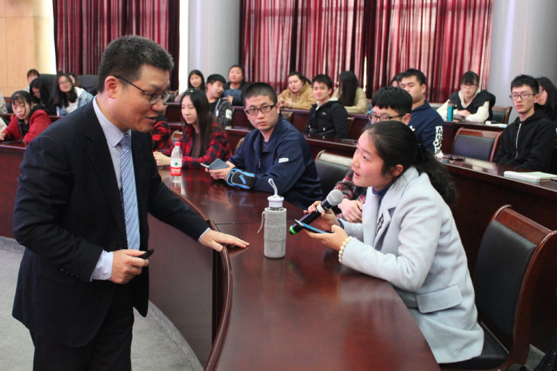 在交流提问环节,同学们就自己关心的问题如CPA考试的准备条件、作为专科层次的会计从业人员如何发挥自己的竞争优势、学历提升等进行了踊跃发言。值得一提的是,来自16会计1班的黄星星是第二次在校聆听王琦赟先生的讲座,她的发言交流给王先生留下了深刻印象,当场获得了去王琦赟会计师事务所实习的机会。