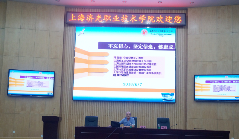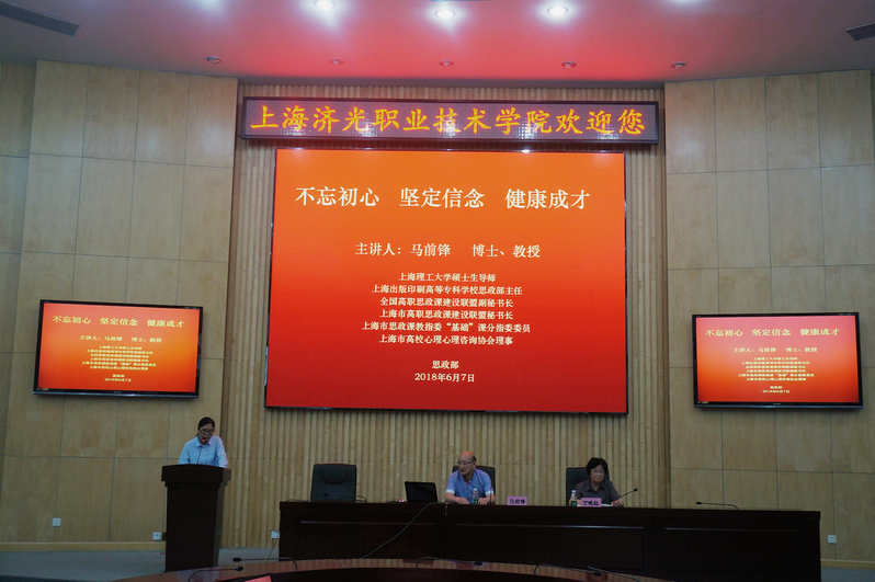 6月7日晚8点,我院思政部特邀上海理工大学管理学院硕士生导师、上海出版印刷高等专科学校思政部主任、全国高职思政课建设联盟副秘书长、上海市高职思政课建设联盟秘书长、上海市思政课教指委“基础”课分指委委员马前锋教授为师生作《不忘初心,坚定信念,健康成才》报告。报告由思政部青年教师田巧玲老师主持,思政部主任丁晓红教授、部分教师和青马学习小组成员以及机电系、建工系的部分学生和经管系学生干部聆听了报告。