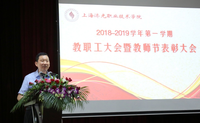 最后,李永盛院长讲话,在讲话中重点传达了习总书记在全国教育大会上的讲话精神。他强调,作为一所公益性的、非营利的民办高职院校,要学习落实习总书记重要讲话精神实质,要制定发展的具体措施,从以下三个方面入手:一是认清高职教育的内涵;二是专业设置、课程与实训安排充分考虑市场需求、社会发展和区域经济增长趋势,三是贴近学生的现实状况与特点实施教学。他号召所有教职工,要依靠企业和行业,产教融合、校企合作 ;确立全面素质教育的理念,保障培养质量 ;全校一盘棋,全员一条心,做好本职工作,促进济光事业发展。