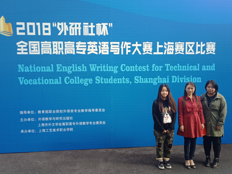 10月21日,第九届“外研社杯”全国高职高专英语写作大赛上海市复赛在上海工艺美术学院隆重举行,基础部教师王德红带领2017级涉外护理7班的孙雨宁和陈玉玺参加此次比赛。经过激烈角逐,王德红老师指导的孙雨宁荣获了公共英语组的一等奖,杨丹凤老师指导的陈玉玺荣获了公共外语组的二等奖。