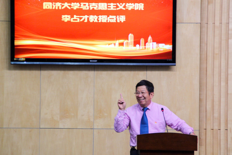 同济大学马克思主义学院李占才教授对选手的演讲进行点评。作为共和国同龄人的李占才教授表示,中国70年的辉煌离不开马克思主义这个法宝,作为和平年代的我们要在各自的岗位上努力工作为实现祖国的辉煌贡献力量;青年人不管在何时都不要自傲,要用真才实干来满足社会需要,为世界做贡献,学会利用世界资源为祖国作贡献;要心胸开阔、有所担当,把世界但在自己的肩上,让自己的人生出彩。