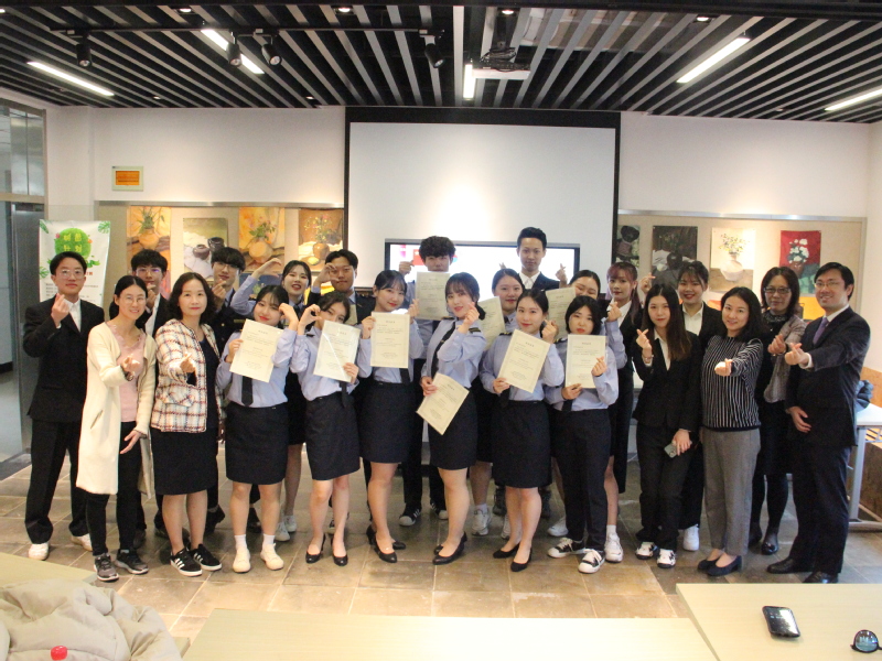 通过此次专业研修,韩国大庆大学的同学们与我院同学建立起了深厚的友谊,同时也学习了相互的专业知识和技能,两校教师也相互交流了专业建设的经验。结业仪式上,外事办主任李仪君、经管系主任张迺英代表学院向大庆大学学生颁发了结业证书,侯丽兰教授代表大庆大学感谢了我院的专业的教学工作和周到的生活服务,并希望两校能进一步开展合作,帮助两校学生的成长,并期待来年,济光学子回访韩国大庆大学,延续双方的友谊,提升双方学生的专业能力。