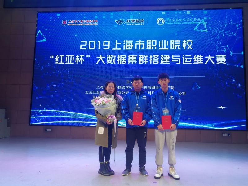 12月1日,由上海工商外国语学校、北京红亚华宇科技有限公司、上海东海职业技术学院、益数软件科技上海有限公司主办,北京红亚华宇科技有限公司提供大赛平台、技术支持的2019年“红亚杯”上海市职业院校大数据集群搭建与运维大赛在上海工商外国语学校举行。我院19级软件与信息服务专业的吴智涵、李宇皓两位同学在专业主任朱景德、指导教师罗成博的带领下,首次参加此项比赛并在大赛中荣获二等奖的好成绩。