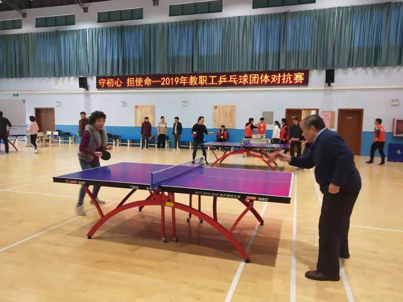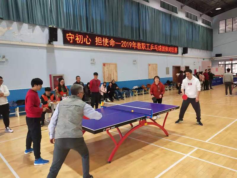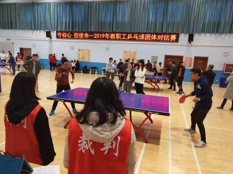 12月6日,学院2019年教职工乒乓球团体对抗赛在体育馆举行。结合学校“不忘初心、牢记使命”主题教育,此次活动以“守初心、担使命”为主题,旨在通过体育比赛活动为教职工搭建强身健体的良好平台。