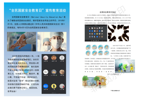 4月15日是我国第五个全民国家安全教育日。为增强学生国家安全意识,根据上海市教卫党委《关于组织开展2020年“4.15全民国家安全教育日主题宣传教育活动的通知》要求,我院于4月10日至4月19日在全院范围内组织开展“2020年‘4.15全民国家安全教育日’主题宣传教育活动”。