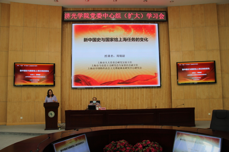 7月3日,我院“四史”学习教育邀请上海马克思主义研究会专家委员会副主任、上海市十九大精神宣讲团成员、上海市“四史”专家宣讲团成员周锦尉来校作《新中国史与国家给上海任务的变化》专题报告,全体党委中心组成员、思政教师、辅导员聆听报告。报告由党委副书记刘丽主持。