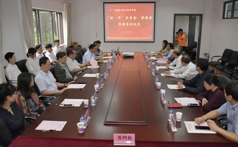 9月18日下午,我院在杨浦校区会议室举行“同·济”奖学金、奖教金捐赠签约仪式。同济设计院总裁、院长王健,同济设计院党委书记汤朔宁,上海同济室内设计工程有限公司董事长高国武、总经理刘沛,学院董事长周家伦、院长李永盛、党委书记姜富明、副院长胡展飞、党委副书记刘丽、副院长王云飞及学院相关部门负责人等出席捐赠签约仪式。签约仪式由副院长胡展飞主持。