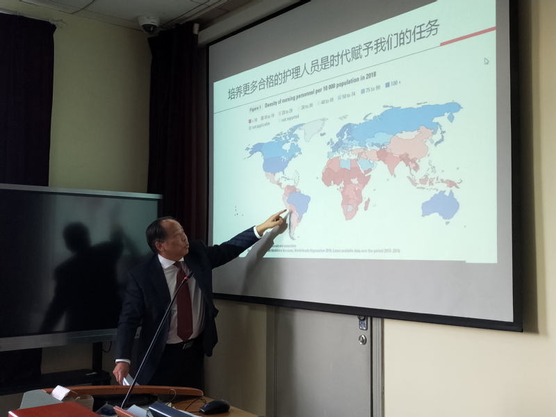 他首先围绕“教育和医疗服务是关乎人民生活的大事”、“破除制约教育事业发展得体制机制障碍”、“党员干部要做到信念坚、政治强、本领高、作风硬”等方面发表学习体会,从中提炼出教育和医疗两大重点内容,带领护理党员们一起学习原著。随后,他从护理助产职业教育出发,分析了护士的现状,探索了如何创造高质量的育人环境和条件,并结合实际情况,贴合学院护理与助产专业提出要求,希望全体护理教师们将培养更多合格的护理人员作为时代赋予我们的任务、解决护理(助产)职业教育中的难题,创建高质量育人环境和条件、振奋精神、忠诚教育事业、陶冶良好职业情操。