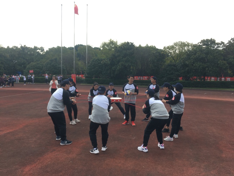 本次团队拓展活动设有一鼓作气、环环相扣、绳舞飞扬、陆地冰壶、力拔山河五个项目。我院辅导员代表队赛前精心准备,多次训练,比赛时团结协作、奋勇争先。“一鼓作气”项目中,大家牢牢抓住之前训练的技术要领,心有灵犀、配合默契,坚持到最后一秒,取得了令人可喜的小组第二名的好成绩。“环环相扣”项目中辅导员手牵着手、互相配合、彼此鼓励,取得了1分零6秒的好成绩。“绳舞飞扬”这项活动中,很多老师克服心理的障碍,顺利地完成了整个过程,取得了小组第二名的佳绩“陆地冰壶”项目中,几位老师连连射中9环、10环,使得比赛高潮迭起。在“力拔山河”项目中,学院党委副书记刘丽也成为拔河队伍中的主力军,学工部部长毛燕静带领观战的老师们在旁边加油助威,大家齐心协力、奋力拼搏,经过三轮较量,成功进入半决赛。