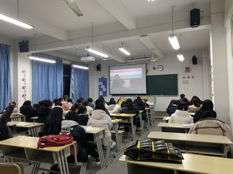 本次课程采用线上线下相结合的方式,报告厅为主会场,主会场直播视频流在信息中心与经管系电商直播平台的技术支持下,清晰流畅的转播到各专业教室,所有2020级新生及辅导员参与了课程学习。