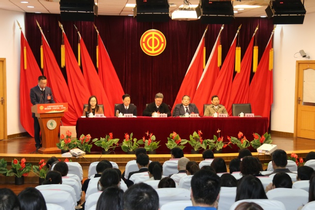 上海市教育工会副主席陶文捷致辞,他指出,学院坚持公益办学、坚持立德树人、坚持以师生为本,坚持创新发展,学院党政班子讲政治和讲大局,学院教职工凝心聚力、奋力拼搏,实现了学院各方面工作稳步发展。他提出三点要求:一要坚持思想政治引领,二要发挥工会组织优势,三要加强工会自身建设。在学院党委的领导下,把广大教职工团结凝聚在党的周围,夯实党执政的群众基础,以推动学院高质量发展为“十四五”开好局,以优异成绩庆祝建党100周年。