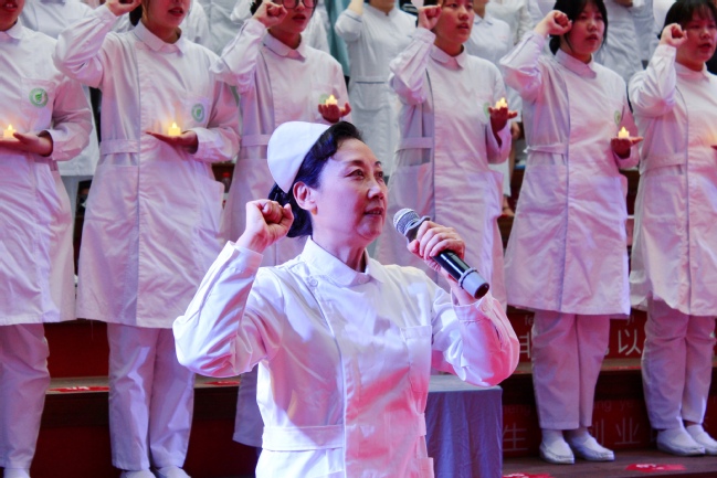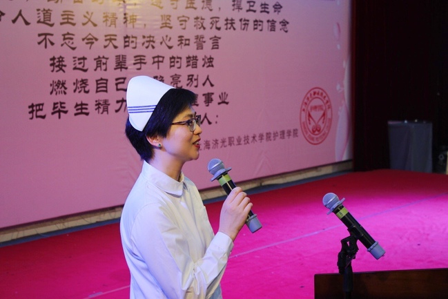 上海交通大学医学院附属国际妇幼保健院护理部主任、主任护师李红为19级的同学们送上了美好的祝愿,她祝愿19级的同学们能成为一名真正合格的护士,用微笑温暖人心、用行动治愈他人,为护理事业贡献一份自己的力量。