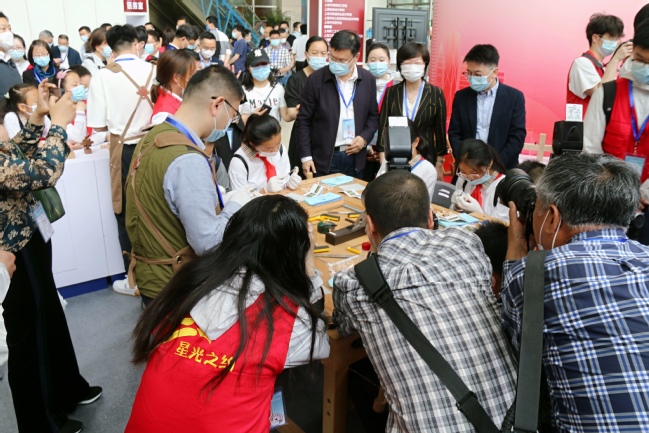 2021年5月8日上午,第九届上海市“星光计划”职业院校技能大赛总决赛在上海科技馆开赛,大赛以“新时代、新技能、新精彩”为主题,在综合了多个赛项同时,还在现场特别安排了16项职业体验项目供中小学生免费报名参与。我院木工大师工作室与建工系专业教师、实训员受邀开展“微缩榫卯营造技艺作品展示和演示”、“鲁班锁(小波萝)制作、重组、拆解互动”两个体验项目。精巧的木作构件、微缩作品展示与有趣的鲁班锁拼装体验吸引了来自多所兄弟院校和企事业单位的目光,在享受劳动乐趣的同时,感受传统木艺的博大精深。