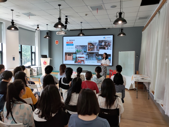 在同济大学老师的带领下我院辅导员参观了同济创业谷,创业谷利用同济大学多学科的有利资源,国际化的办学特色,实现了独特的区位化。随后同济大学创新创业控股有限公司创业分基金副秘书长冯晓晓老师介绍了公司为同济大学学生和校友创业提供的全链条、全要素、全周期的创新创业服务体系以及取得的成效。该公司自与我院签订创新创业合作协议以来,已经面向济光创业学生和创业校友开展了培训活动和创业训练营活动。