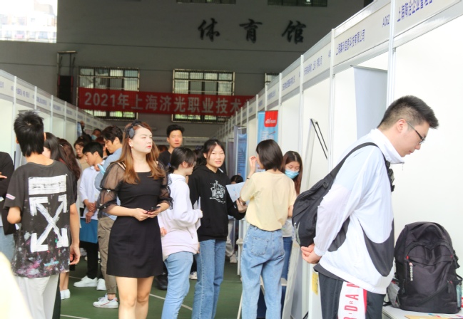 双选会现场人头攒动,秩序井然。党委书记姜富明、副院长胡展飞、党委副书记刘丽、副院长王云飞等学院领导以及各相关职能部门负责人莅临现场,走访用人单位展位,并与工作人员、参会老师和应聘学生亲切交谈。各院系党政领导、专业主任、系主任助理、专职教师、辅导员也在现场指导学生应聘技巧并与用人单位洽谈合作。宝山区就业促进中心、宝山区仲裁院以及杨行镇的就业创业指导专家、劳动法专家齐聚济光,为学子提供政策咨询服务。参加应聘的济光学子以饱满的精神状态与招聘单位热切交流、积极互动,展示了自身实力。双选会当天还组织了多场企业宣讲会,增进学生对企业方的了解。
