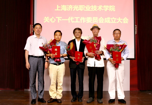 会上,刘丽副书记宣读了《成立上海济光职业技术学院关心下一代工作委员会的决定》和《关于聘请王建中等五位同志为关工委“五老”的通知》。姜富明书记向关工委“五老”王建中、阴佳、蒋荻、李占才、顾惠明颁发了聘书。阴佳教授代表“五老”做了交流发言。