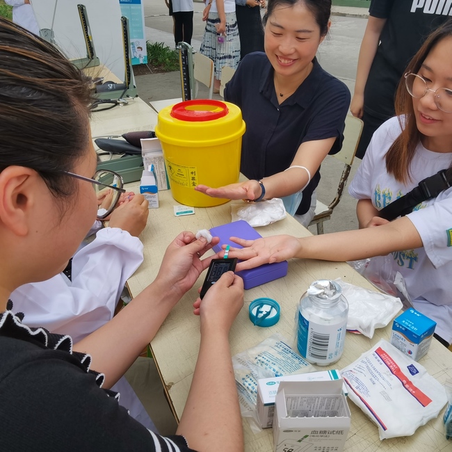 通过测量血压、血糖,来提高大家的自身健康意识,老师还对于血压、血糖高者提出了指导建议,鼓励大家健康饮食,叮嘱其注意日常作息、饮食习惯,以便有效地控制血压、血糖,保持身体健康。