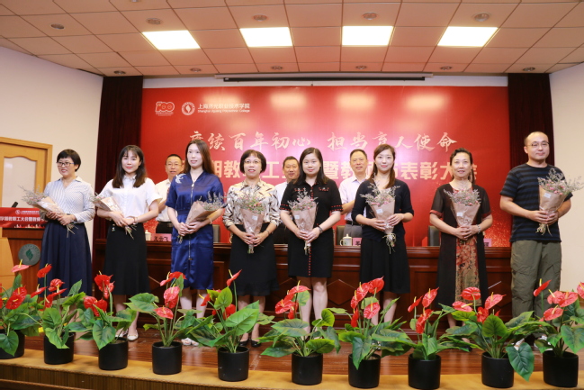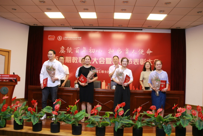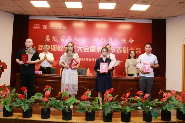 为激励教职员工对学院教育事业做出的贡献,学院四位院领导对2020-2021学年获得市级以上荣誉的教师代表进行表彰,对获得校内“优秀教师”、“优秀辅导员”、“先进教育工作者”进行了颁奖。全院教职工集体观看了《上海济光职业技术学院2020-2021学年教书育人成果巡礼片》,一帧帧画面记录了一年来学院全体教职工踏实行进在育人之路上,坚守初心、砥砺奋进的育人成绩。优秀教职员工认真从教、热情服务、甘为人梯的情怀和信仰,感染和激励着现场每一个人。