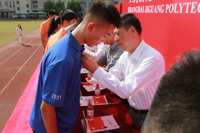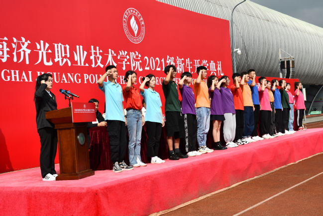 开学典礼上还进行了新生佩戴校徽仪式,全场新生庄严宣誓:铭记“求实求新,人人成才”之济光校训,传承“同舟共济,公益办学,自强不息,追求卓越”之济光精神,文明敬业,矢志奋斗;爱党爱国,勇立潮头;为实现中华民族伟大复兴的中国梦而努力奋斗。