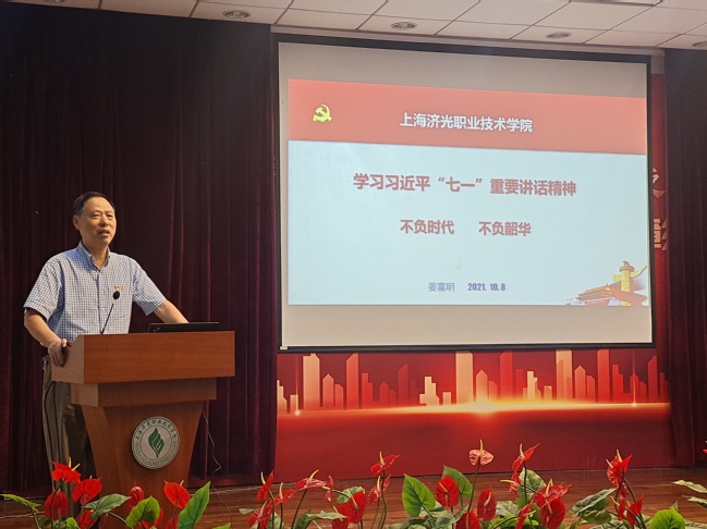 开班式结束后,党委书记姜富明以《学习习近平七一重要讲话精神不负时代不负韶华》为题开启本期党校培训班第一课。姜书记围绕“习近平七一重要讲话精神”“中国共产党的初心和使命”“中国共产党为什么能”“扣好人生第一粒扣子”“人生要敢于追梦、要奋斗”五个方面深刻阐述了学习七一讲话的核心要义,从历史发展角度梳理总结了中国共产党诞生到发展壮大、带领中华民族走向复兴的必然,全面总结了党史学习的重要意义,以及作为青年大学生,如何树立远大理想、热爱伟大祖国、担当时代责任、勇于砥砺奋斗、修炼品德修为。姜书记强调,在全面建设社会主义现代化国家新征程中,职业教育前途广阔、大有可为。济光的青年人要有志气,选择了职业教育,就要在这条路上努力奋斗,刻苦学习、攻坚克难,敢于质疑、勇于创新,言必诚信、行必忠正,牢记初心使命、坚定理想信念,昂首挺胸走自己的路,勇敢追逐自己的梦想,做自信、自强的新一代。