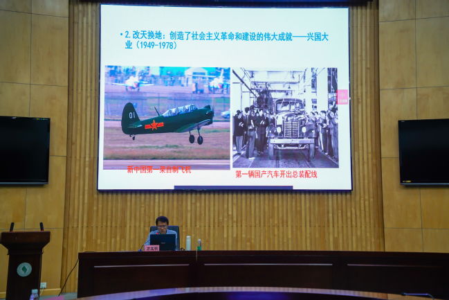 开班仪式后,同济大学马克思主义学院的万立明教授为师生们讲授了本期学习班的第一课《百年大党继往开来的政治宣言——学习贯彻习近平总书记“七一”重要讲话精神》。万立明老师是上海市委讲师团“四史”专家宣讲团和党史学习教育专家宣讲团成员,在重要学术期刊上发表数十篇著作,出版多部个人专著,研究领域为党史党建。