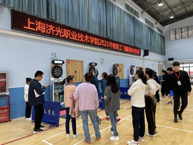 为进一步丰富教职工业余文化生活,增强工会组织凝聚力和向心力,10月22日中午,由工会主办、基础部(思政部)部门工会承办的学院2021年教职工飞镖团体对抗赛在体育馆举行。各院系、部门工会100多位教职工积极参与团队对抗赛及个人高分赛的角逐。