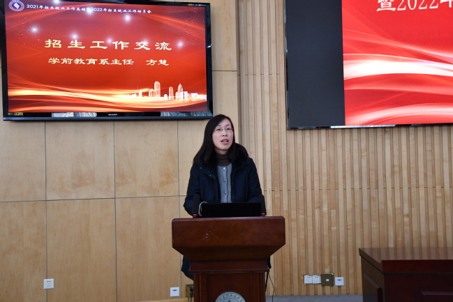 学前教育系主任方慧介绍了本系招生工作经验。学前教育系高度重视招生工作,多措并举,引入多元化评价体系及专家“智囊团”加强专业内涵建设,打通多元的升学渠道,共同助力招生的良性发展。