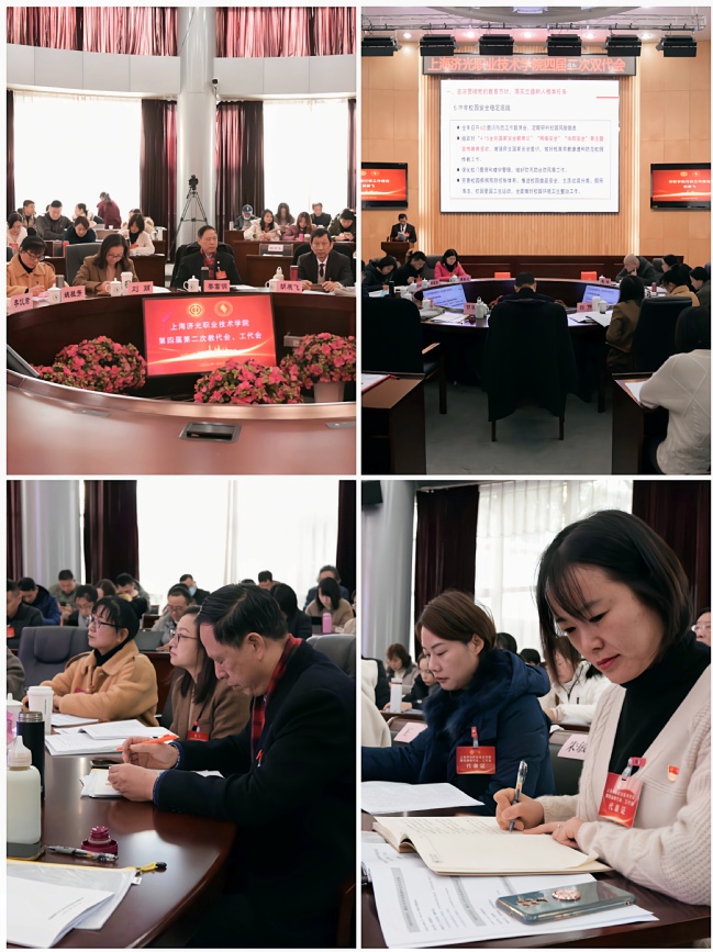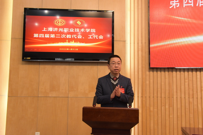 2022年1月12日,学校第四届第二次教代会、工代会在圆形会议室隆重召开。董事长周家伦、校长胡展飞、党委书记姜富明、党委副书记刘丽、副校长王云飞和正式代表68人、列席代表29人、特邀代表1人出席大会,大会由副校长、工会主席王云飞主持。大会通过了《学校行政工作报告》《学校财务情况报告》《学校工会工作报告》《学校工会经费审查工作报告》,学校章程修改和增补董事的说明。会上,对学校领导班子和领导班子成员进行民主评议。