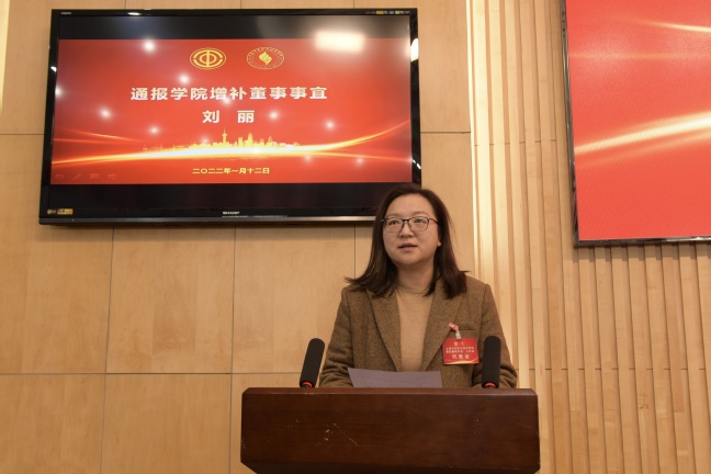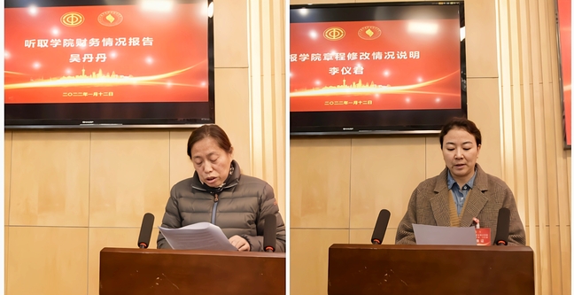 会议上财务处处长吴丹丹通报了学校2021年财务情况、学校财务收支情况及分析、财务工作总结,以及2022年学校财务工作计划;董事会秘书、人事处处长李仪君通报了学院章程修改情况说明;监事长、党委副书记刘丽通报了学校增补董事事宜。会议书面下发了2021年学校工会工作报告,2021年学校工会经费审查工作报告。
