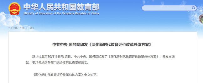 (三)改革目标。经过5至10年努力,各级党委和政府科学履行职责水平明显提高,各级各类学校立德树人落实机制更加完善,引导教师潜心育人的评价制度更加健全,促进学生全面发展的评价办法更加多元,社会选人用人方式更加科学。到2035年,基本形成富有时代特征、彰显中国特色、体现世界水平的教育评价体系。