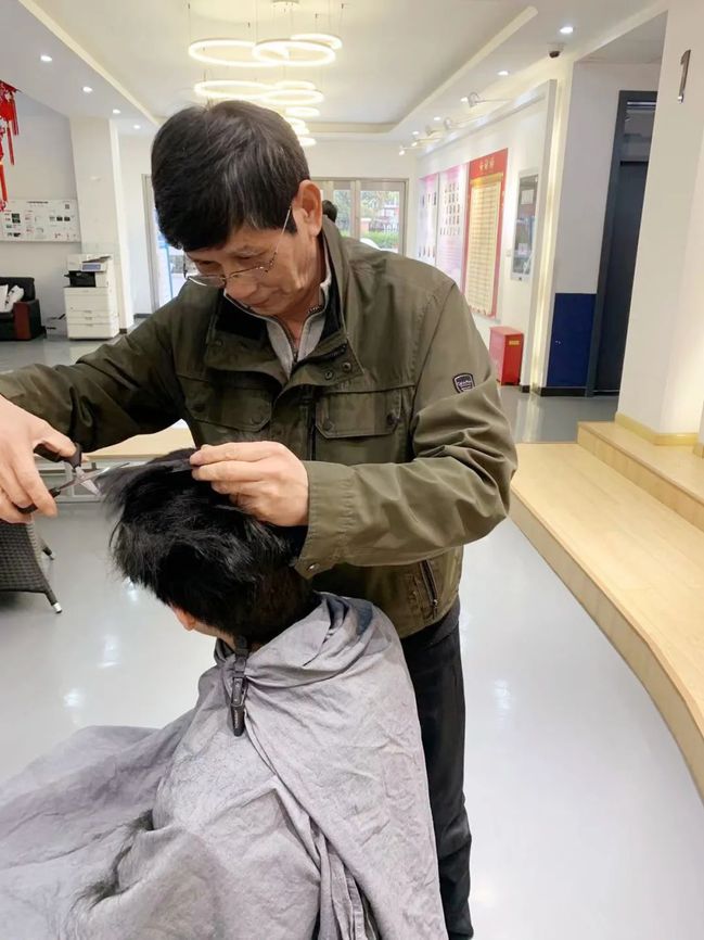 当被问及给师生理发的感受时,赵培忠书记说:“我是自学理发的,之前在部队服役和同济大学任职期间,也经常给别人理发。这次理发服务,其实这也让我有机会更加贴近学生,在剪头发的过程中和他们谈谈心聊聊天蛮好的,也能一定程度上缓解他们的情绪。也请同学们放心,我们24小时与你们同在,大家一起携手抗疫! ”