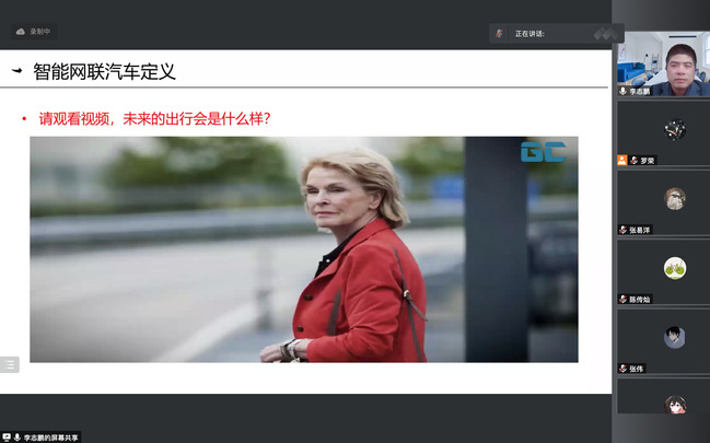 紧接着,李志鹏教授以清晰的专业思路和丰富的实际案例向同学们讲解了智能网联汽车的发展历程以及其在智慧时代的重要作用。依据现阶段发展,给出了智能网联汽车的定义、特征与分级,帮助同学们建立了基本的知识框架。随后,李教授就世界范围内智能网联汽车的发展态势进行了讲解,从技术创新到发展环境再到战略规划,相关成果的产出也标志着智能网联汽车进入了快速发展期。面向未来,李教授强调,电动化、智能化、网联化、共享化将成为我国汽车技术发展方向,聚焦量产与解决新型安全问题将成为主流。