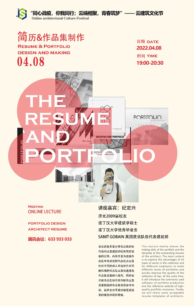 为迎接2022建筑系“树苗计划”云面试活动,进一步提高建筑系学生的专业素质,建筑系于4月8日晚举行简历与作品集制作线上分享活动,邀请济光学院建筑系2009级校友纪定兴。纪定兴2019年获得英国诺丁汉大学建筑学硕士,是英国诺丁汉大学的优秀毕业生,目前担任中国绿地生态规划设计研究院常务副院长。建筑系各年级200多位同学参加了本次分享活动。