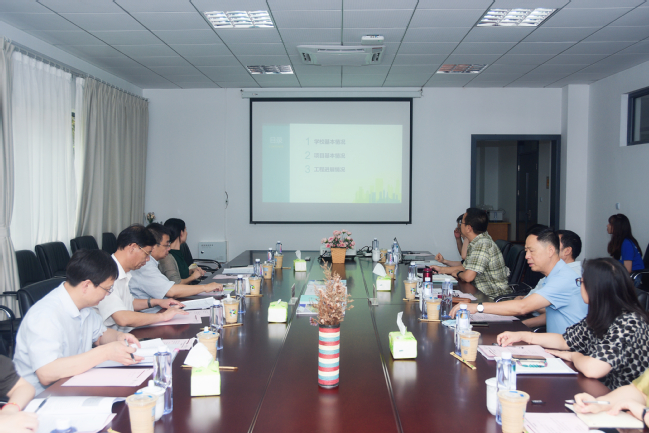 会议伊始,教委民办处季秋瑜副处长首先简要说明了市级财力支持民办校实训中心建设的背景和要求,并逐一介绍专家组一行6位专家。校长胡展飞代表学校热烈欢迎专家组的到来,并介绍了我校参会人员和学校办学情况。副校长王云飞从工程立项、项目规划、施工情况、项目功能以及项目最新进展等五个方面向专家组进行汇报。教务处处长王娟从空间布局、教学理念、教学体系、教学方法、师资队伍、实训设备、运行管理、信息技术、产教融合等九个方面向专家组详细汇报了综合实训中心的规划情况。