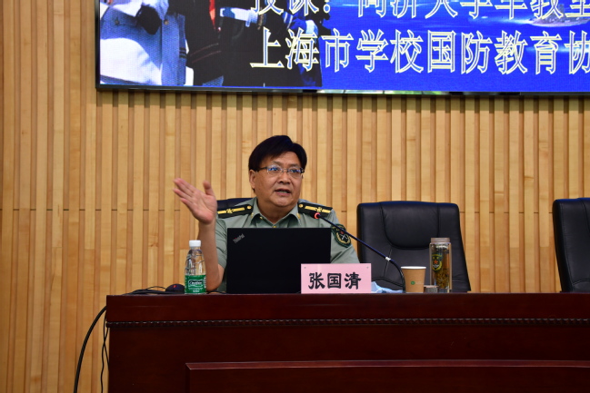 2022年9月6日上午,同济大学军教室、上海市学校国防教育协会高校分会会长张国清教授应邀来我校,在圆形会议室为2022年级新生上了一堂非常精彩的军事理论课,各院系新生代表参加了学习。