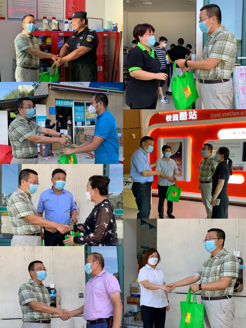 9月19日下午,副校长、工会主席王云飞亲切看望在校园抗疫期间默默奋战在保洁、保安、维修、食堂、快递站、超市、宿管一线的后勤员工,代表学校向后勤人员致以诚挚感谢,详细询问后勤四支队伍员工的工作、生活情况,了解校园防疫措施的落实情况,将学校的关怀和慰问品一并送到他们手中。