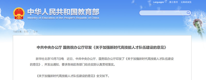 《关于加强新时代高技能人才队伍建设的意见》全文如下。