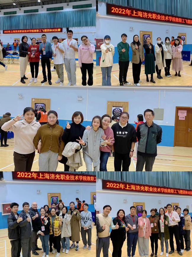 党的二十大报告强调要建成教育强国、科技强国、人才强国、文化强国、体育强国、健康中国的总体目标。为认真贯彻落实党的二十大精神,进一步丰富教职工的文化生活,让大家在忙碌的工作之余放松身心,培养健康向上的生活态度,11月18日一场集友谊、竞技、健身为一体的教职工飞镖团体对抗赛在宝山校区体育馆举行,本次比赛由校工会主办,基础部体育教研室承办,来自11个基层工会组成的9支参赛队伍60余名教职工参加团体对抗赛,46名教职工参加个人高分赛。