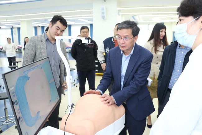 调研会上,装备中心领导尹怡楠科长首先介绍了本次调研工作的背景及目的,旨在了解各单位基地建设情况,汇总好的经验及范本素材。姚淳副院长代表学校就助产专业虚拟仿真实训基地建设情况进行汇报,汇报内容主要包括该项目的平台建设、团队建设、产教融合、运行管理及建设成效等。随后,由护理学院教师姜俞英等为调研组专家演示了产钳术3D交互系统和四部触诊虚实结合系统,并邀请专家体验相关软件的操作和使用。
