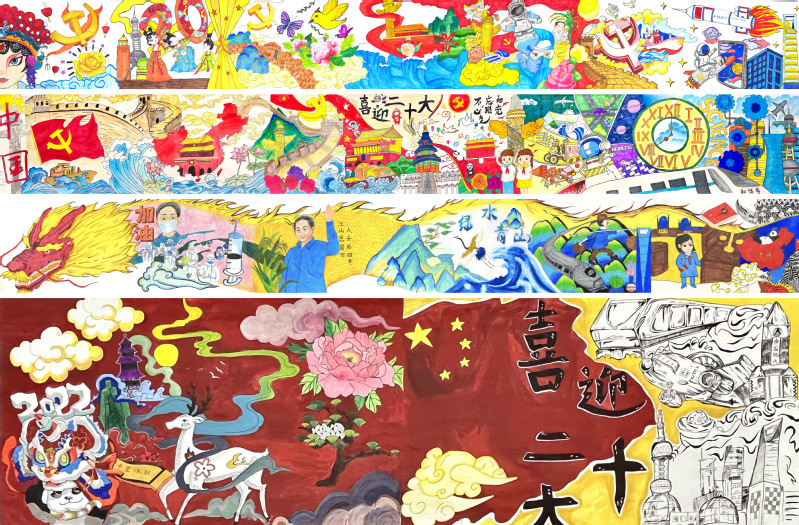 家有山河锦绣,国有岁月芳华;以青春之名,绘出真挚之爱;以心中红星,献礼盛世中华。本次活动以“青春·发展·理想”为主题词,征集到了手绘、剪纸、贺卡、长卷等多种形式的美术作品。
