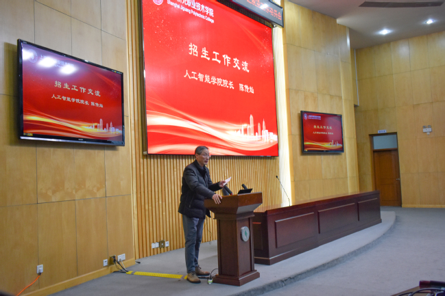 招生就业工作离不开各院系的支持。2022年人工智能学院的招生规模数上升较为明显,取得了丰硕的成果。人工智能学院院长陈传灿就今年招生特色做法和成功经验进行汇报,并对提高人才培养质量、加强专业建设、拓宽招生宣传方式等方面提出意见建议。